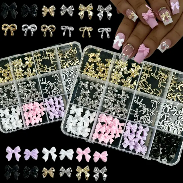 Hot Selling New Style Resin Bow Nail Charms Random Mixed Bowknot Alloy Nail Art Decorations Supplies Accessories DIY Crafts